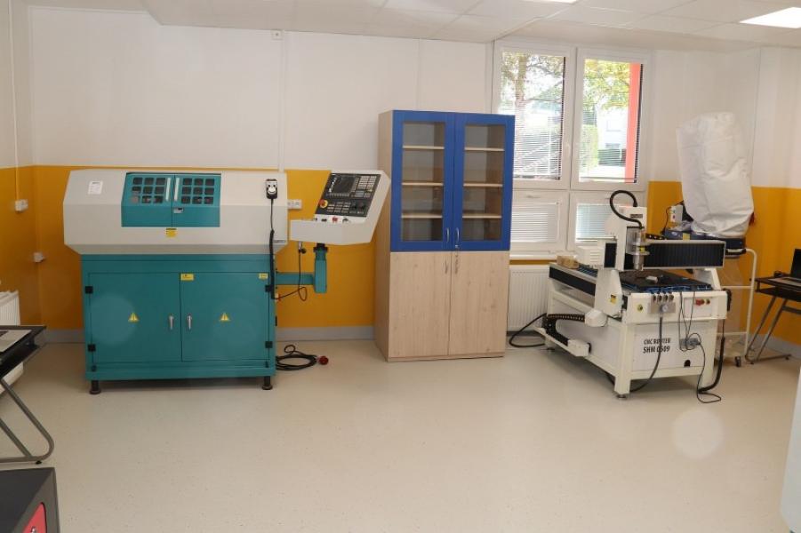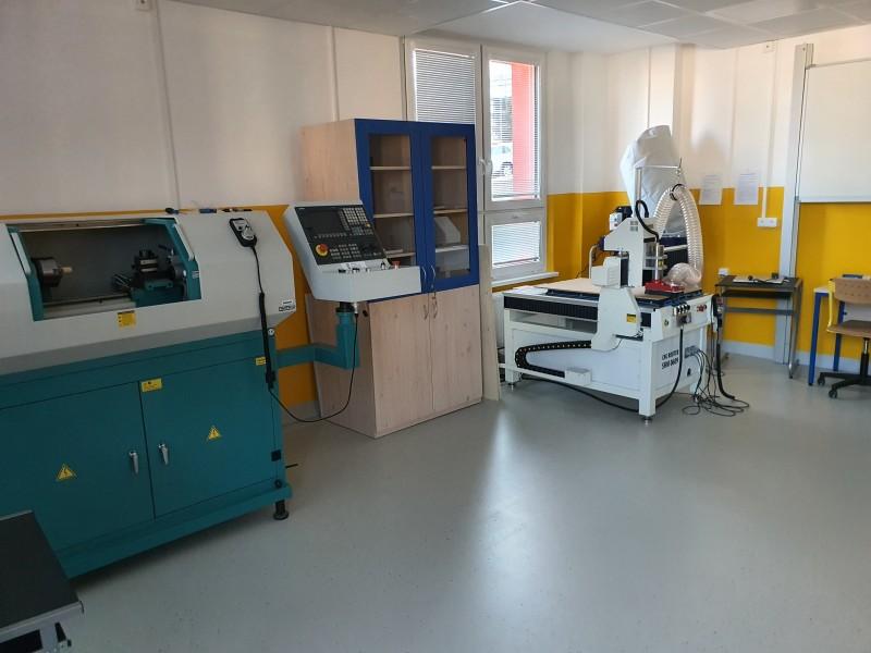 „Od března pak začala etapa druhá, spočívající v instalaci vybavení včetně nábytku a strojů,“ uvedl ředitel školy Hynek Hromada, podle jehož dalších slov díky projektu vznikne nová učebna robotiky, programování a jazyků vybavená 24 počítači, 3D tiskárnami, drony, LEGO roboty a další moderní technikou. V žákovských dílnách již jsou namontovány hoblice, nechybí zde množství kvalitního ručního nářadí, AKU nářadí, ale i stroje na obrábění dřeva – hoblovka s protahovačkou, pásová a pokosová pila a instalováno je rovněž odsávání. Unikátem je pak dílna polytechniky, která vznikla v bývalém školnickém bytě. Její vybavení by mohl škole závidět lecjaký řemeslník. Jsou zde totiž umístěny čtyři moderní CNC obráběcí stroje – frézka, soustruh, router a vypalovací a gravírovací laser. Nechybí ale ani klasické stroje – stolní vrtačka, soustruh, frézka či pásová gravitační pila.