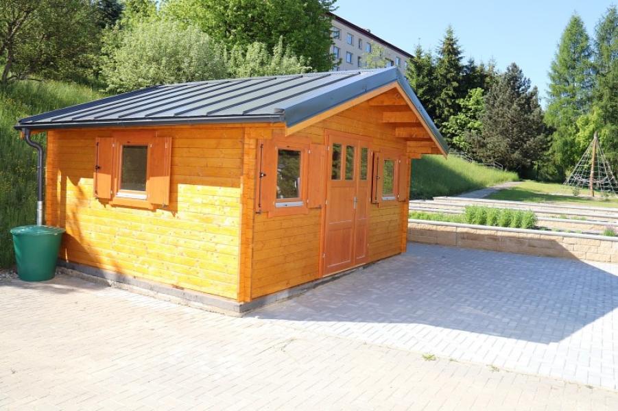 Školní zahrada má nově environmentální odpočinkovou zónu určenou k relaxaci dětí, ale i výuce pěstitelských prací. Vybavena je zahradním domkem pro uložení nářadí a vyvýšenými záhonky pro pěstování zeleniny a bylin.