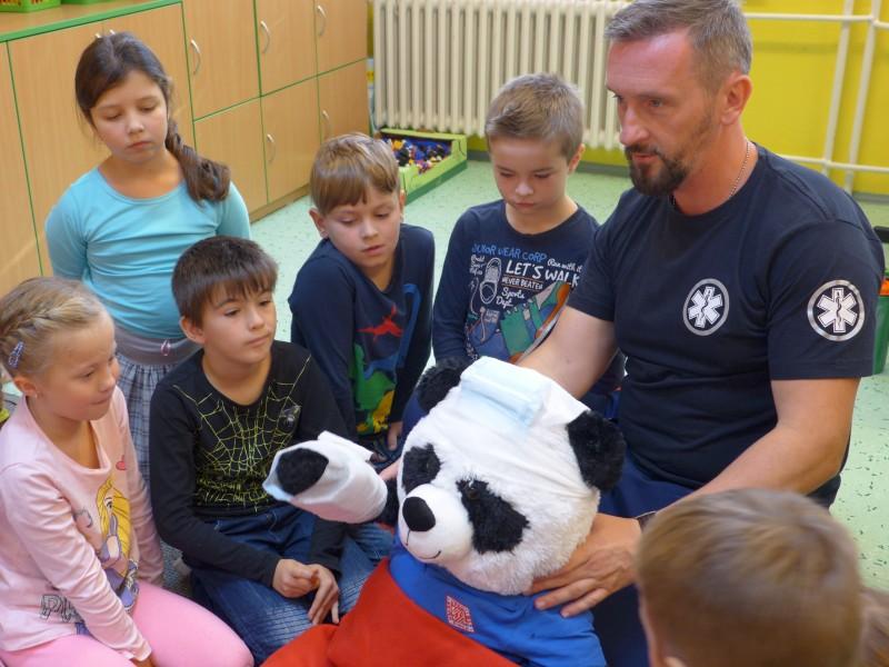 Letošní školní rok se prvňáčci zúčastnili projektu BEZPEČNOST DO ŠKOL. V pátek 25.10.2019 nás první vyučovací hodinu navštívili záchranáři ZZS Zlínského kraje a seznámili školáčky zábavnou formou s poskytnutím první pomoci při různých zraněních, jak se v těchto situacích zachovat a jak přivolat zdravotnickou záchrannou službu. Děti si také zopakovaly důležitá telefonní čísla. Celou dobu je doprovázel veliký plyšový medvídek, na kterém si děti mohly vyzkoušet první pomoc. Prvňáčci obdrželi i dáreček – příručku s Diplomem malého zdravotníka a reflexní klíčenku. Ve druhé vyučovací hodině dorazila do třídy další návštěva – zástupce BESIPU a PČR. Zajímavou a zábavnou formou byly děti seznámeny s tím, jak se správně pohybovat ve městě, na cyklostezce, silnici atd. Děti se staly figuranty a vyzkoušely si různé dopravní situace, ke kterým může dojít. Nechyběly ani převleky, videoukázky a názorné pomůcky. Každý žák obdržel dáreček ve formě reflexního prvku.