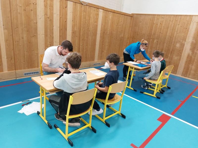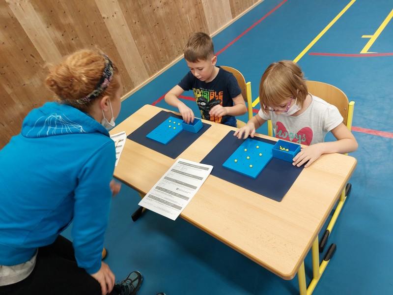 Celá spolupráce mezi školou a univerzitou je rozdělena do dvou různě dlouhých fází. Ta první je realizována ve škole v těchto týdnech, kdy nás navštěvují spoluřešitelé výzkumu dr. Ludvík Valtr a Mgr. Kamila Banátová s dalšími členy týmu. Během hodin tělesné výchovy provádí testování motorického vývoje žáků. Jedná se například o úlohy hodnotící úroveň hrubé, jemné motoriky a rovnováhy jako jsou stoj na jedné noze, házení míče na terč, navlékání korálku na šňůrku a další. . V případě zájmu rodičů je možné zaslat zpětnou vazbu s výsledky žáků.