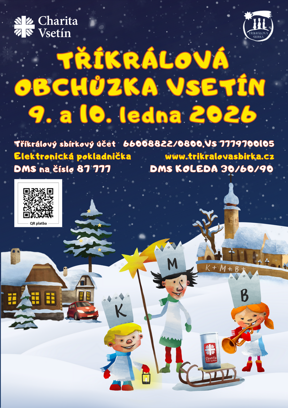 Charita Vsetín pořádá ve dnech 9. a 10. ledna 2026 tradiční Tříkrálovou sbírku, největší dobročinnou akci svého druhu v České republice.